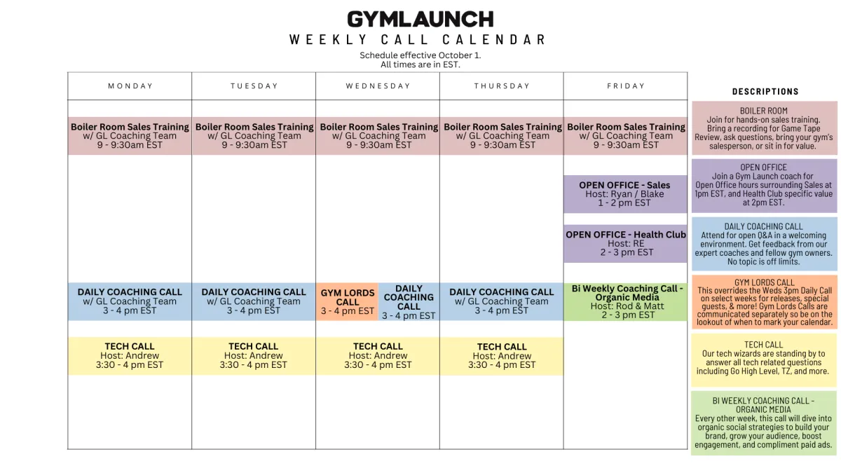 Weekly Call Calendar
